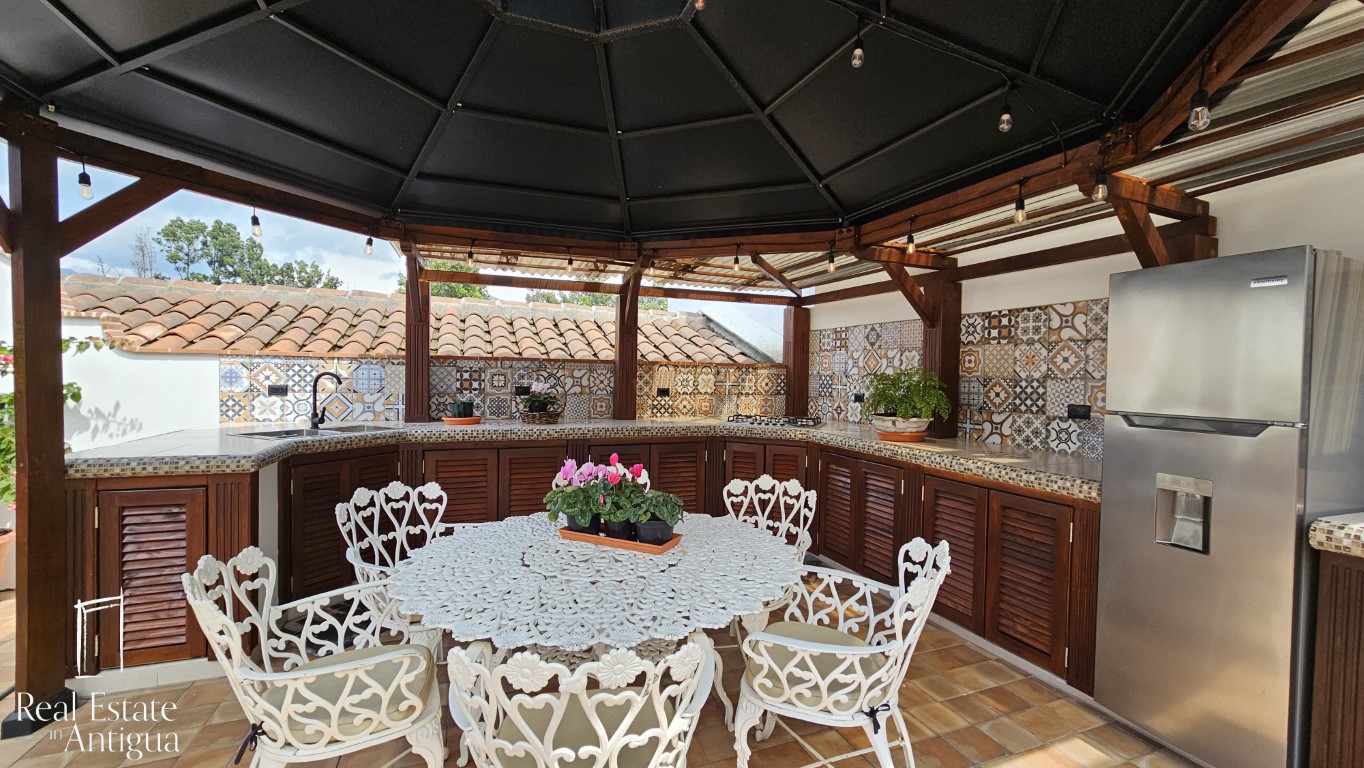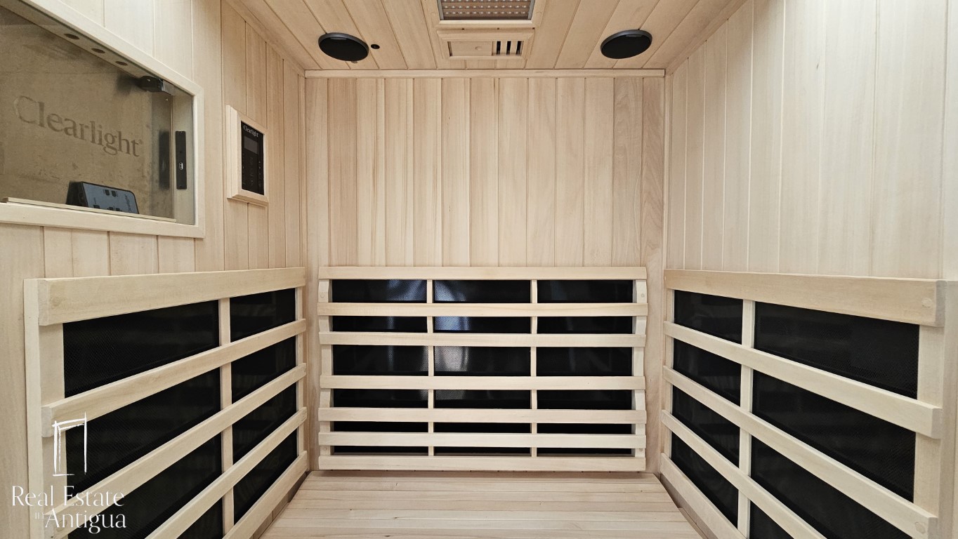 La casa también cuenta con un área de terraza en donde encontramos un lindo gazebo con área de estufa, refri y lavatrastos, además cuenta con un área de churrasquera. Además encontramos un moderno sauna infrarrojo para 2 personas.