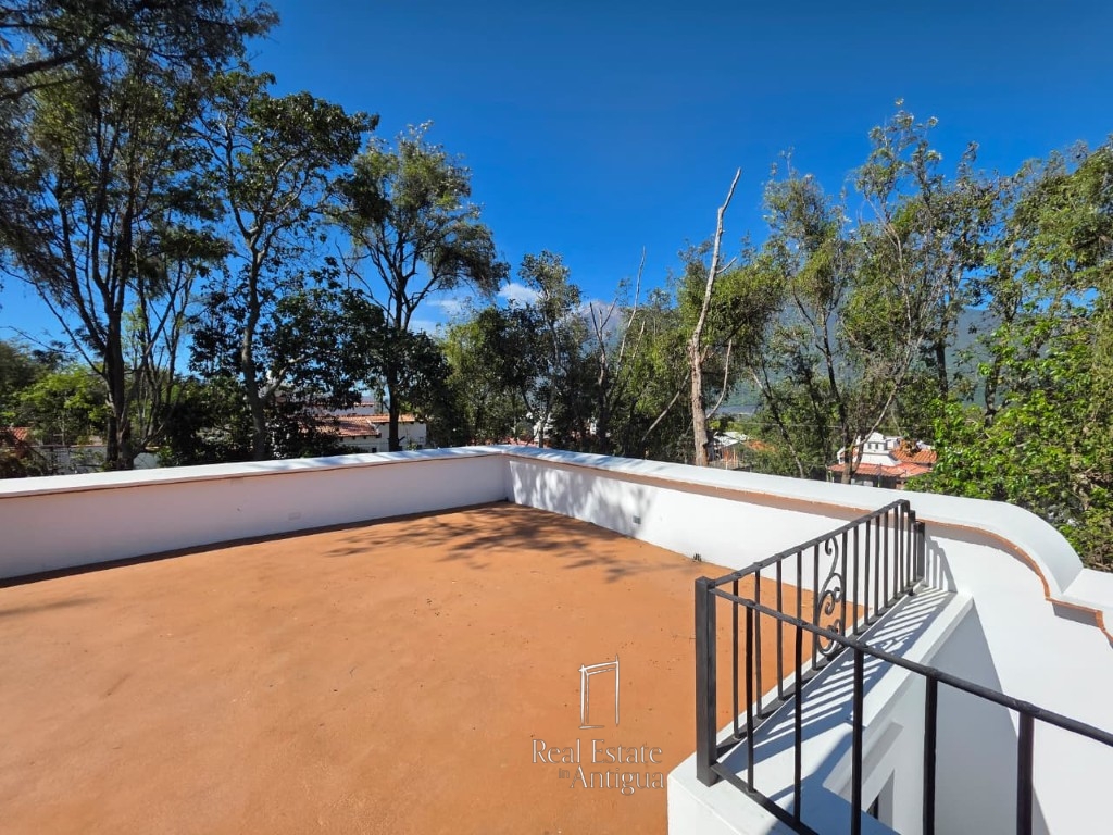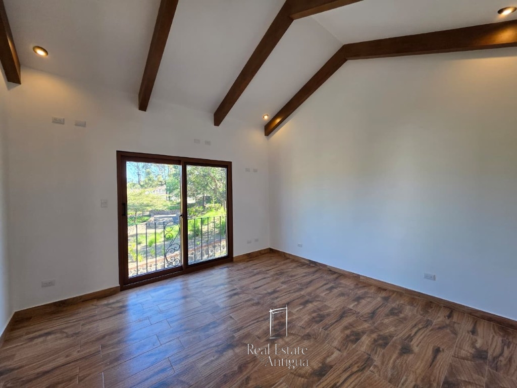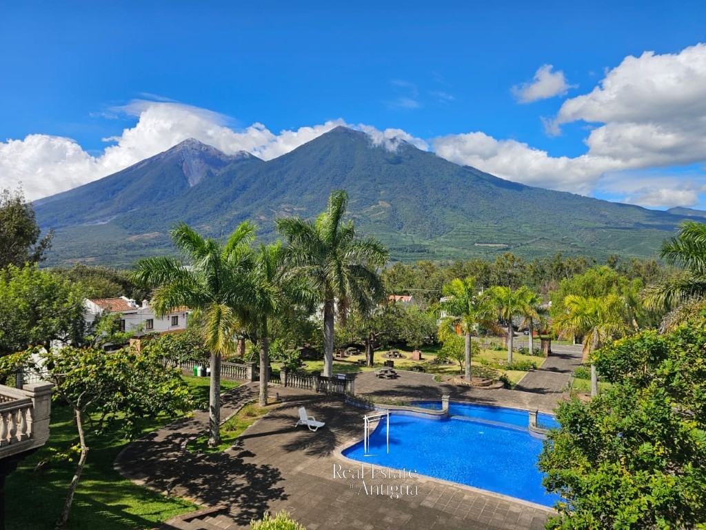 This beautiful two level house is located in an exclusive residential area just 18 minutes from La Antigua Guatemala, surrounded by stunning views of the volcanoes Agua, Fuego and Acatenango. The house is located in front of a beautiful park, which gives it a very pleasant feeling, the house has a functional distribution with garage for one vehicle, spacious living room, dining room with brick ceiling of baked clay, modern kitchen with an elegant dome, laundry area, four bedrooms each with closet and bathroom, one of them being on the first level, plus a guest bathroom and panoramic views from a large terrace. The residential offers exceptional amenities such as three clubhouses, parks and green areas, swimming pool, gym and tennis court, creating an ideal environment to enjoy the tranquility.