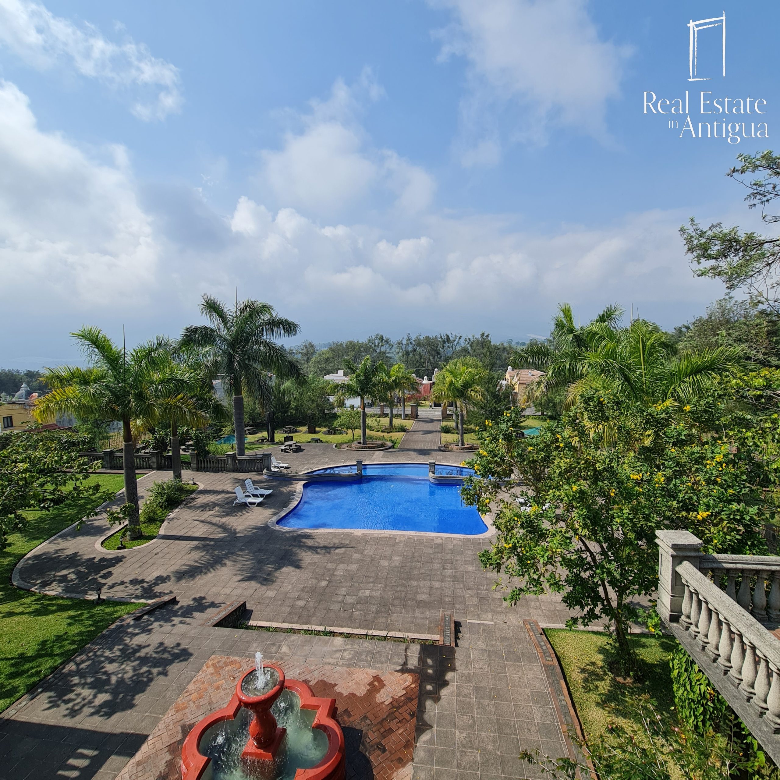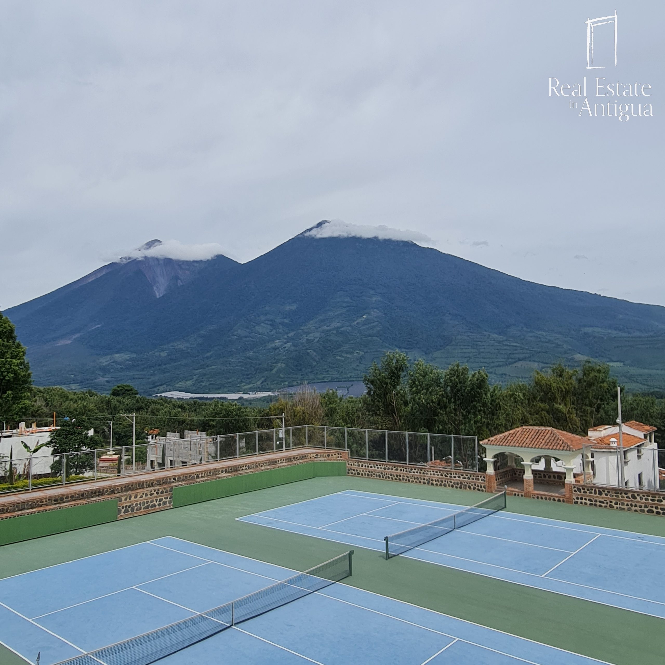 Live surrounded by luxury, comfort, and nature in this spectacular home located just 18 minutes from La Antigua Guatemala. Enjoy breathtaking views of the Agua, Fuego, and Acatenango volcanoes every day from your private terrace. Its modern two-level design offers spacious, light-filled rooms: living room, dining room, open kitchen, garden with a fountain, and four comfortable bedrooms, including a master bedroom with a private bathroom. Located in a residential area with three clubhouses, a swimming pool, gym, tennis court, and green areas, this property combines elegance, tranquility, and a privileged location.